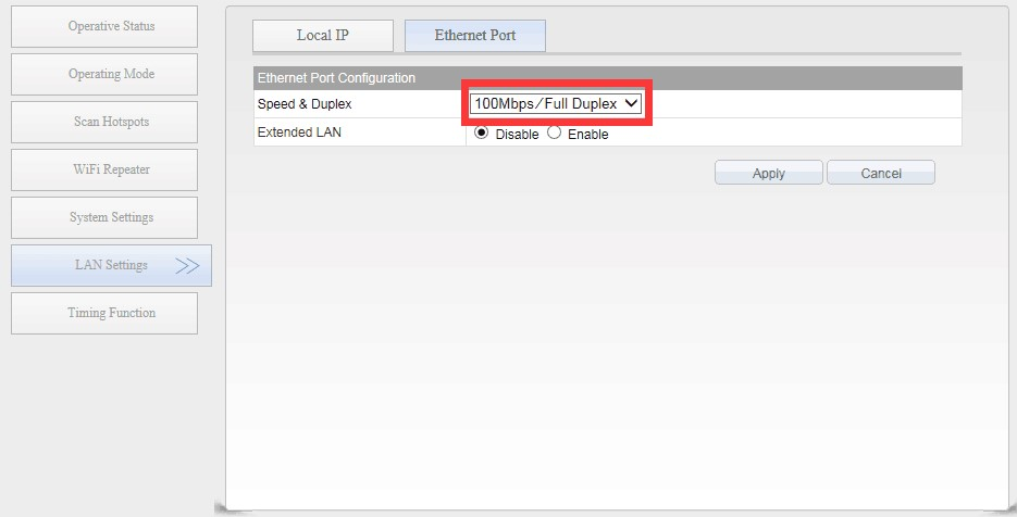 Maybe the device does not detect the network port, it will automatically shut down, just change the device to full duplex in the configuration interface, as shown in the figure: